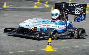 PRE supplies the charger for the car. Joshua Jones, graduate student at PRE power developers and former member of the Formula Student Team is responsible for engineering the charger. Joshua explains: “The charger needs to be able to recharge the 600V battery within the hour. The team, and not in the least the organization [of the driverless competition, edt.] sets high demands for the charger. It has to be communicating with the Battery Management System (BMS) through the CANBus. The BMS balances the cells internally and conveys how much power should be delivered and what the state-of-charge is. The charger also has to comply with the safety norms. An integrated system makes sure that everything comes to a halt when there is an error message. Also, the charger should be able to monitor the electrical separation between the power lines in the chassis continually. And, of course, a very practical demand: the charger should fit on the car.